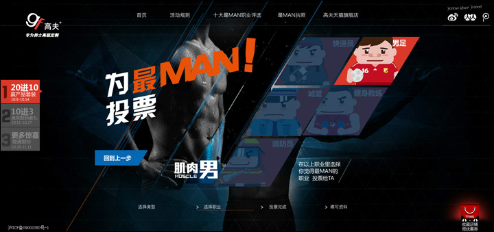 市場上唯一“專為男士高級定制”的個人護理品牌——高夫,在網(wǎng)絡打造“最MAN十大男性職業(yè)”事件,吸引消費者關注并積極參與到活動中,在網(wǎng)絡掀起最MAN職業(yè)的話題和熱潮。