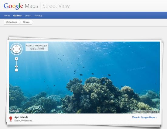 用戶可以訪問maps.google.com/ocean查看這些圖片
